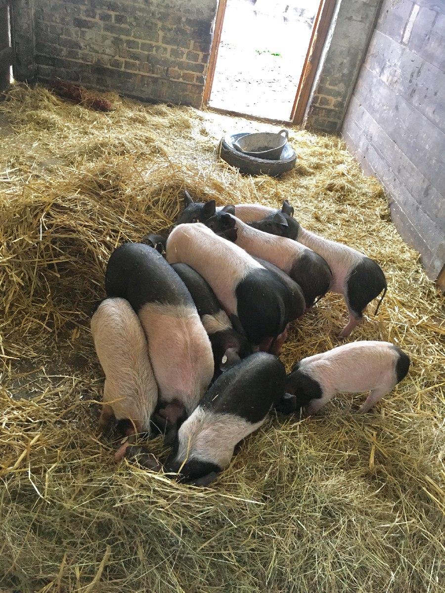 Wir verkaufen noch 8 ( 1 weibliches und 7 männliche Ferkel )vom 27.10.17.Die Ferkel wiegen zwischen 20kg und 25kg und werden bei uns im Offenstall gehalten,haben also täglich Auslauf(bei jedem Wetter),sind entwurmt,die Jungs sind kastriert und allesamt super Fresser.Das Futter besteht aus eigenem Biologischen Anbau und es kann gerne ein Sack zur Umstellung mitgegeben werden.Ferkel und Elterntiere können gerne besichtigt werden.Bei Interesse gerne per Telefon,E-Mail oder WhatsApp