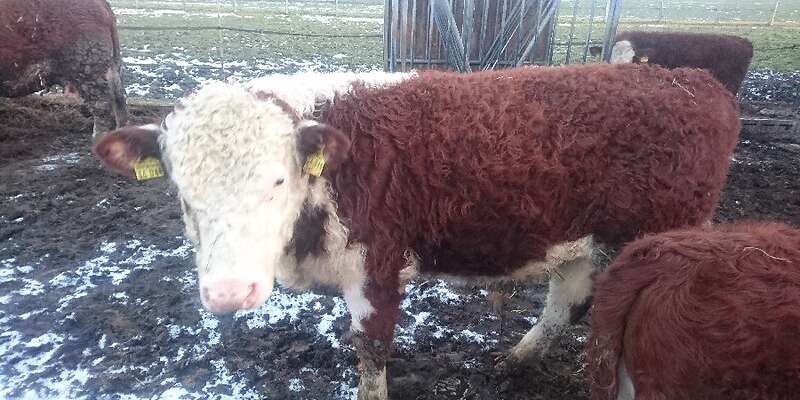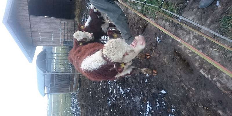 Biete wunderschönen reinrassigen gegnetisch hornlosen 10 Monate alten Bio Hereford Stier.
