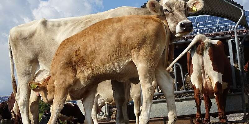Ich Verkaufe hier eine Braunvieh Kuh mit Kalb