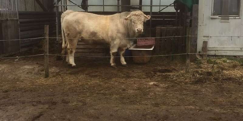 4 jähriger Charolais-Deckbulle, großrahmig. Ruhig und sehr brav im Umgang. Ist Weidegang gewohnt.