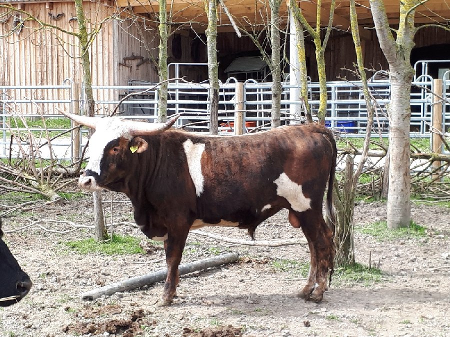 Verkaufen unseren tollen braun/weißen Texas Longhornbulle 2 Jahre alt. Er hat originale Texas Papiere.
