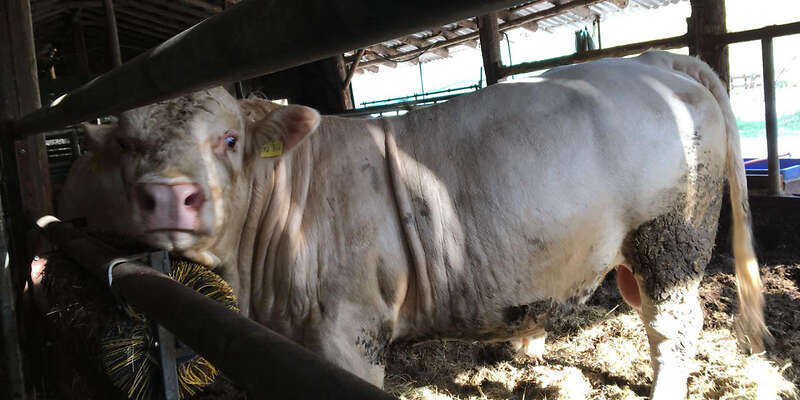 5 wunderschöne, sehr ruhige Charolais Deckbullen, aus eigener Zucht, im Alter von 14 bis 19 Monaten abzugeben.