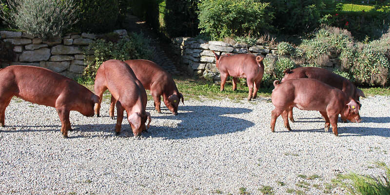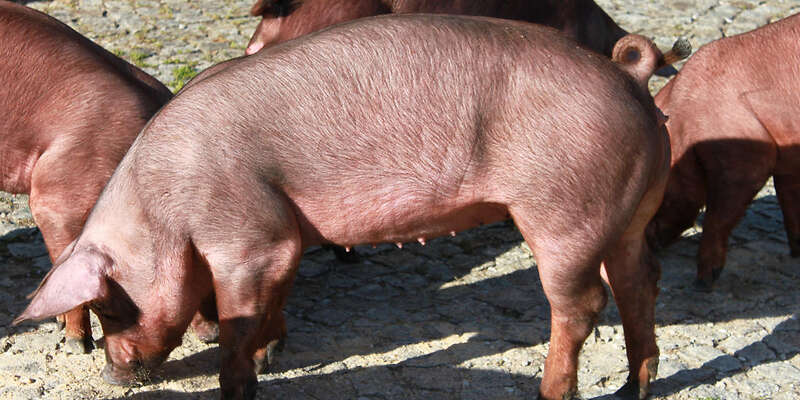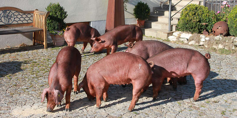 Biete 8 weibliche reinrassige Duroc-Zuchtläufer mit ca. 80 - 90 kg an.