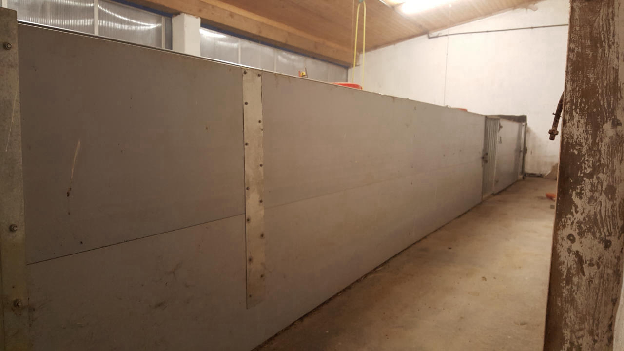 Die Trennwände sind ca. 3,75m ( inklusive Türe und integriertem Futterautomat)