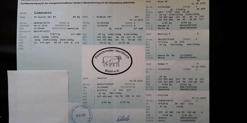 Wir verkaufen unseren Limousin Deckbullen, geboren am 08.01.2015 - Abstammung siehe Anhang