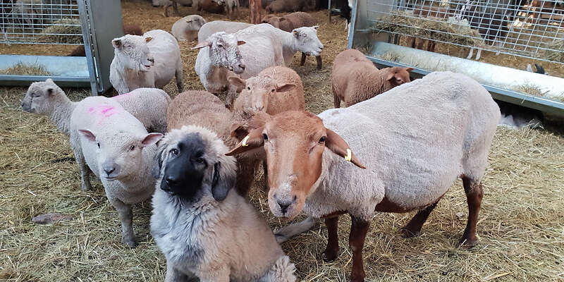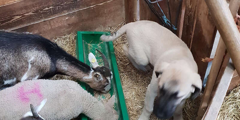 Unsere Herdenschutzhundwelpen der Rasse Kangal wurden am 10. Januar geboren. Die Eltern arbeiten in unseren Schaf- und Ziegenherden, die Welpen sind von Anfang an im Schafstall mit dabei.