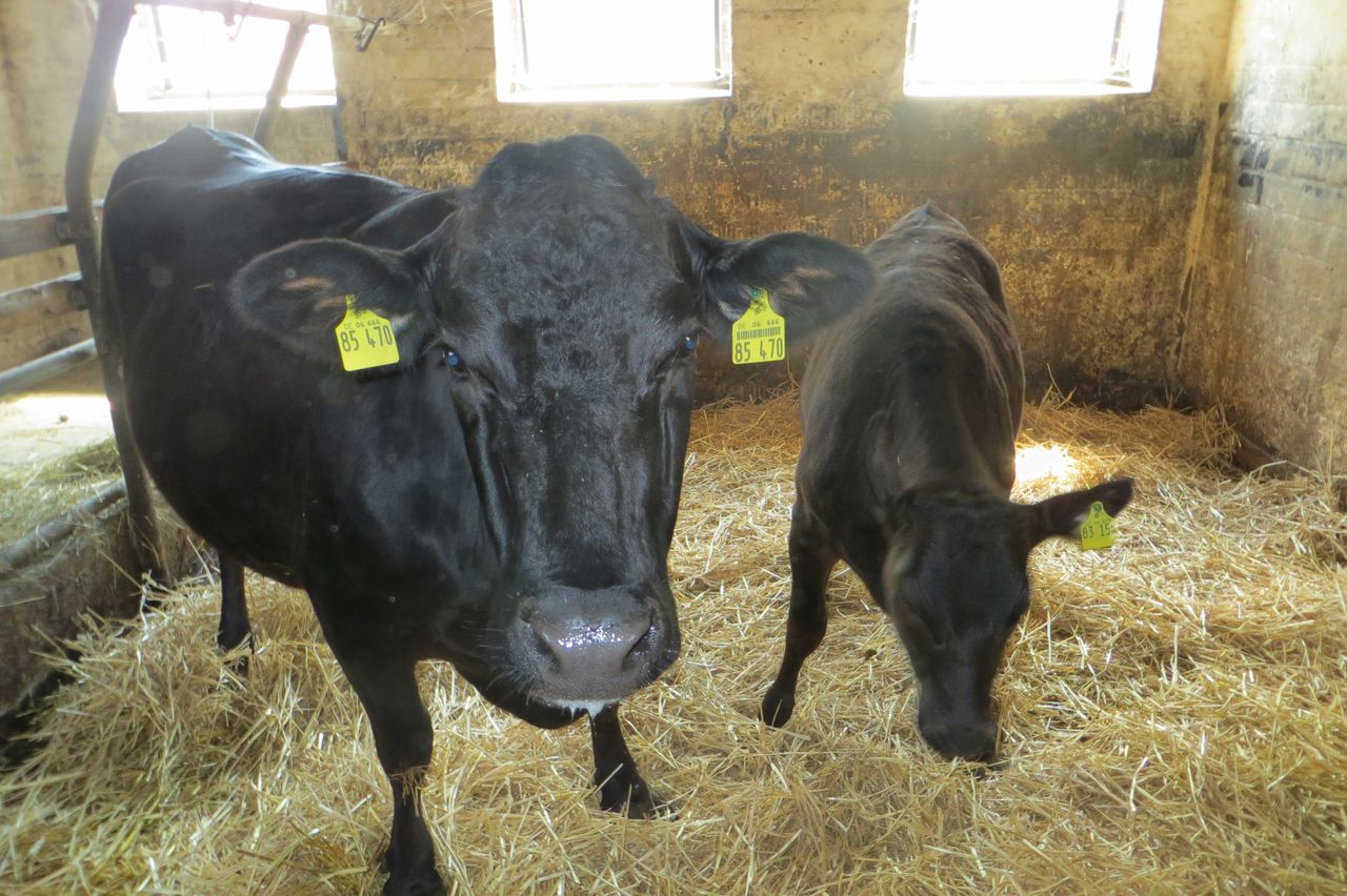Mutterkuh,geb. 16.12.2014 tragend seit 15.Februar 2019, mit Kuhkalb , geb. 28.11.2018. Die Kuh ist sehr brav und an Menschen gewöhnt. Die Kalbung verlief ohne Komplikationen, es ist das zweite Kalb.