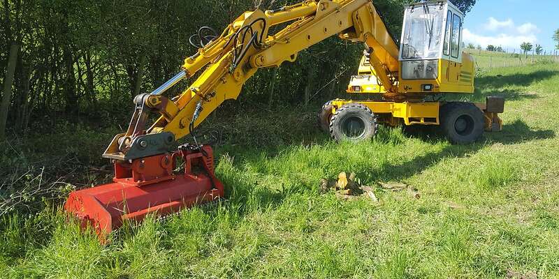 Bitte Bagger Libher 911 mit mülchkopf , reifen neuwertig ,1 m tiefen Löffel , sofort einsatzbereit bei weite frage bitte melden