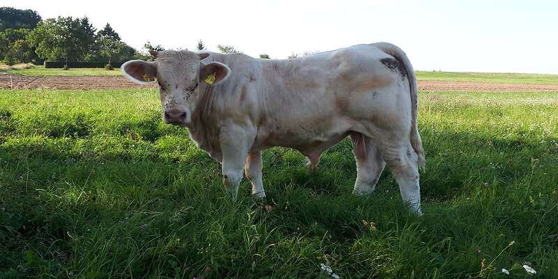 Zum verkauf stehen 6 Charolais HB Biojungbullen im alter zwischen 8 bis 6 monaten die Väter sind Jasper (8/8/8) RZF 118 ein Juventus Sohn VV Jumper aus einer Suedois Tochter. Lascar (9/8/8) RZF 120 ; Herakles Sohn.Einer der Jungbullen ist hornlos.