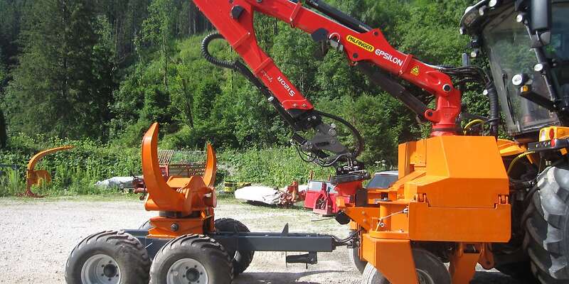 für Einzelunternehmer und ist in wenigen Minuten abzuhängen. Mit Epsilon Kran S 120 R, Tiger 12 T Funkwinde. Am Kran ist ein Holp Schnellwechsler mit Drehkranz montiert. Eigenhydraulik mit Zapfwellenantrieb. Dazu einen Holzgreifer FG 43 S mit Doppelpendelbremse .Jak Energieholzgreifer 250 mit Tiltfunktion,, Böschnungslöffel 1,3 m , kompl. Geräterahmen für Astsäge oder Astschere, dreh und schwenkbar. Schneepflugplatte für Fronthydraulik. PKW