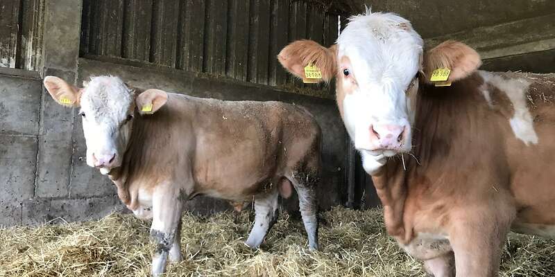 2 Bio Fleckvieh-Jungbullen zu verkaufen