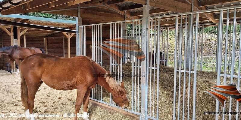 Idealer Stallbau & Pferdebox - Pferdeunterstand und Offenstall mit Fressgitter