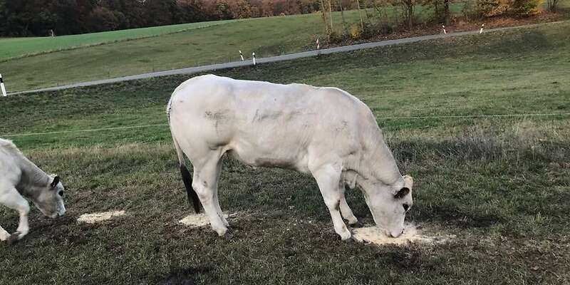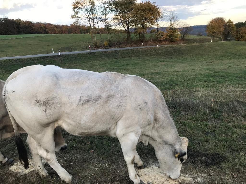 Tragende und deckfähige Färsen sowie weibliche und männliche Absetzer, genetisch hornlos, Herdbuch, körfähig aus EU-Bio-Betrieb abzugeben.