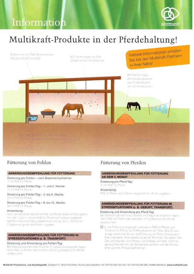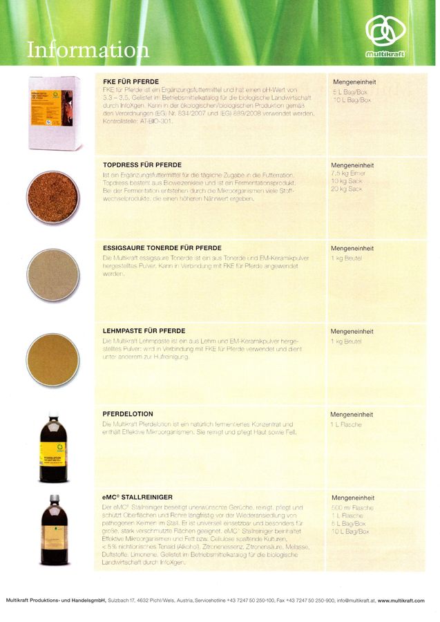 Wir sind Vertriebspartner der Firma Multikraft, die als beständiges Familienunternehmen, seit mehr als 40 Jahren, größten Wert auf Beratung und Wissensverbreitung der EM - Technologie legt (EM - Effektive Mikroorganismen). Multikraft produziert ökologische Produkte mit nachhaltigem Nutzen für Mensch, Tier und Umwelt.