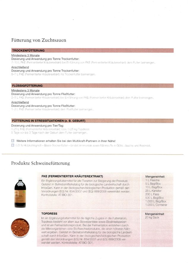 - FKE (Fermentierter Kräuterextrakt), Ergänzungsfuttermittel für alle Tierarten