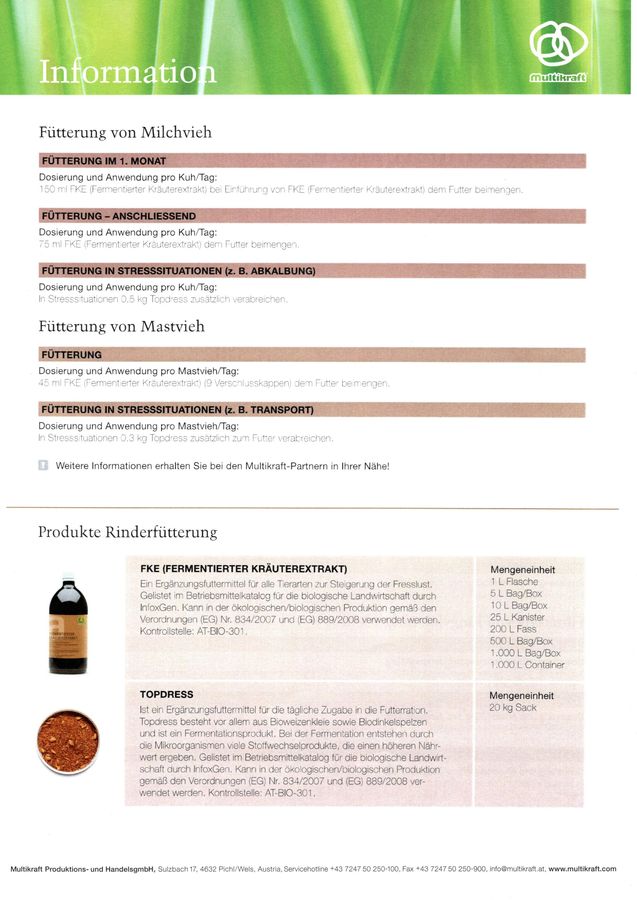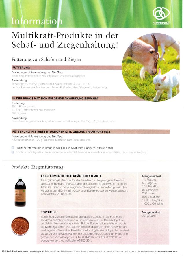 - Multitop, Ergänzungsfuttermittel für alle Tierarten
