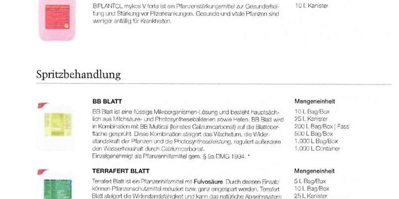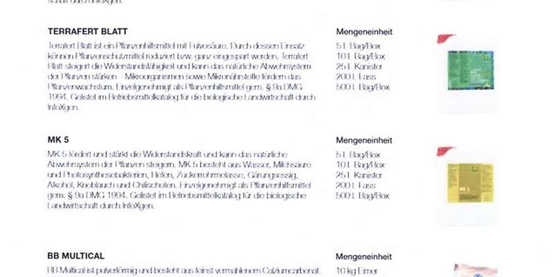 Die Produkte sind gelistet im Betriebsmittelkatalog für biologische Landwirtschaft.