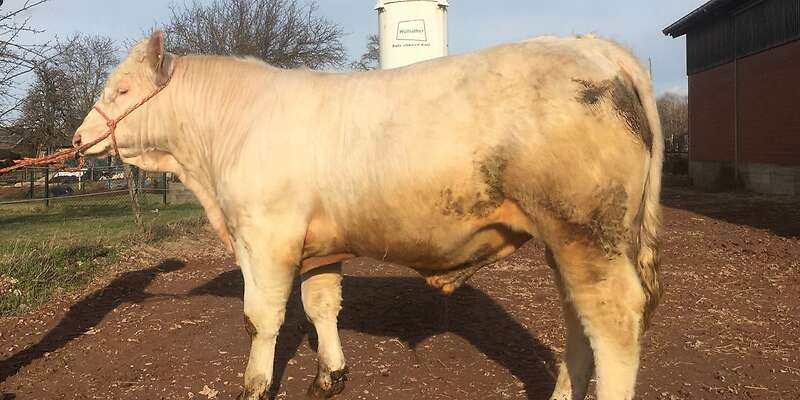 Angeboten wird ein genetisch hornloser Charolais Deckbulle.