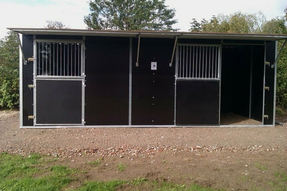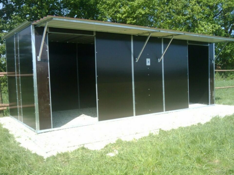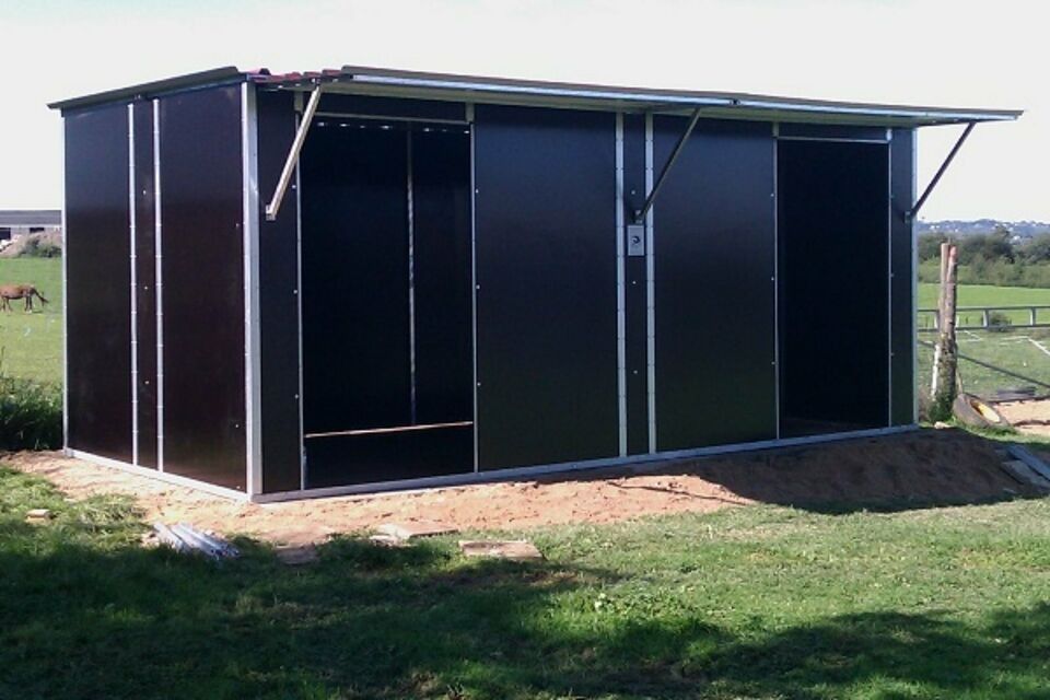 Unsere Hippo-Tech fahrbaren / mobilen oder stationären Weidehütten / Doppel-Außenboxen liefern wir Ihnen als Bausatz zur Selbstmontage oder auf Wunsch fertig montiert.