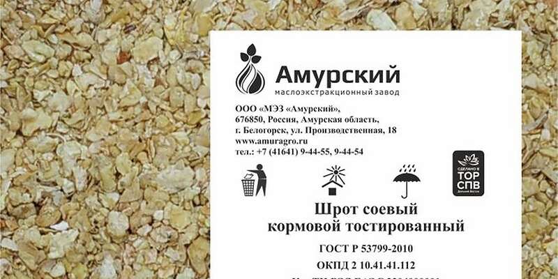 Toasted soybean meal is widely used in modern industrial feed production allowing to compensate the lack of protein in the grain feed and herbal feed