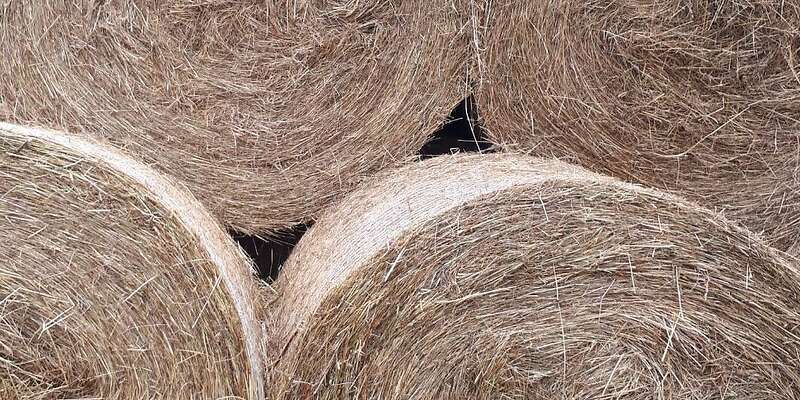 (Heuballen für Pferde zuerst schneiden!)