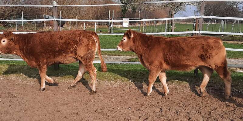 Verkaufe 5 ruhige Limousinrinder im Alter von 18 bis 12 Monate, vier sind homozygot, eins heterozygot. Väter sind LemH Pp, Maradona PP, Grand PP und Howard PP. Pedigrees und Fotos können gerne gesendet werden. Sie sind Weide und Laufstall gewöhnt.