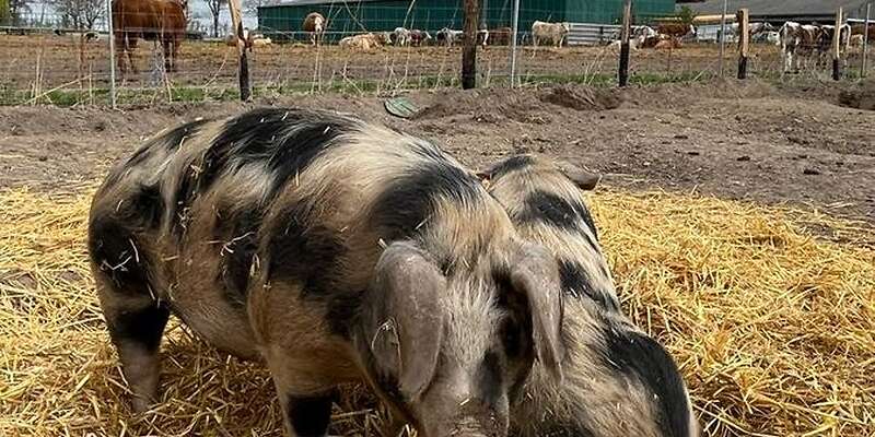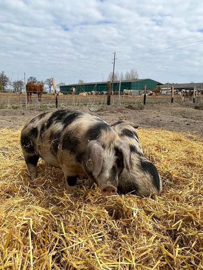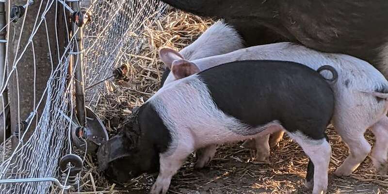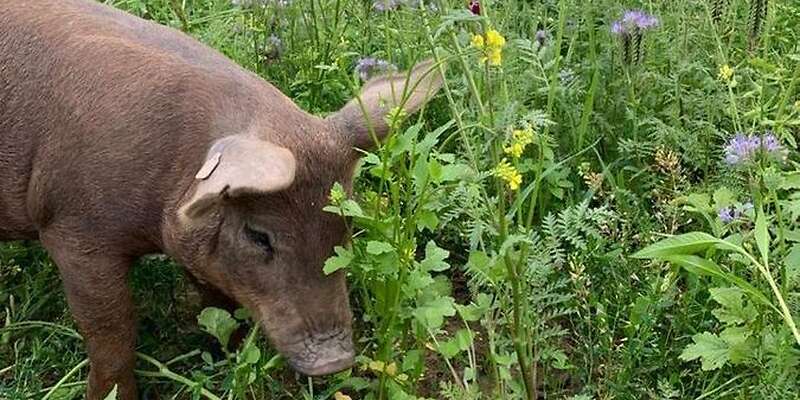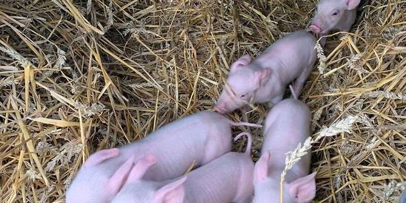 Öko-Ferkel und Schlachtschweine Bentheimer Duroc Sattelschwein