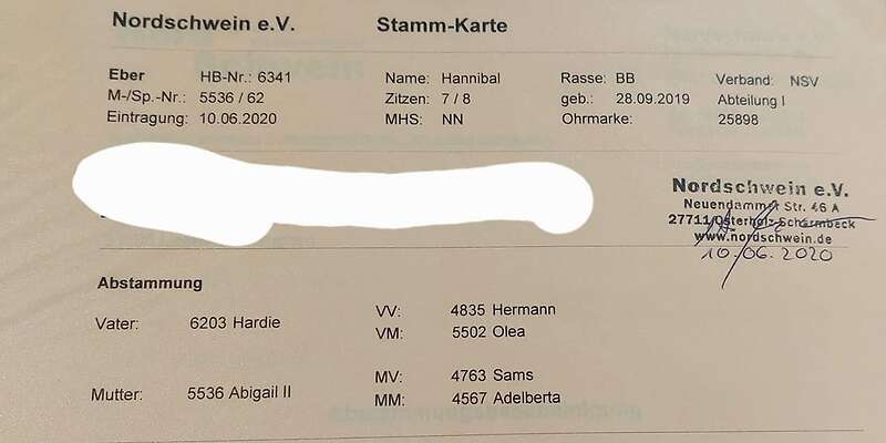 Unser Zuchteber, reinrassig und gekörter Bunte Bentheimer sucht einen neuen Wirkungskreis. Wir waren sehr zufrieden mit Hannibal, er ist ruhig und kennt auch den Elektrozaun, da unsere Schweine im Sommer draußen leben. Hannibal wohnt momentan im Süden Luxemburgs.