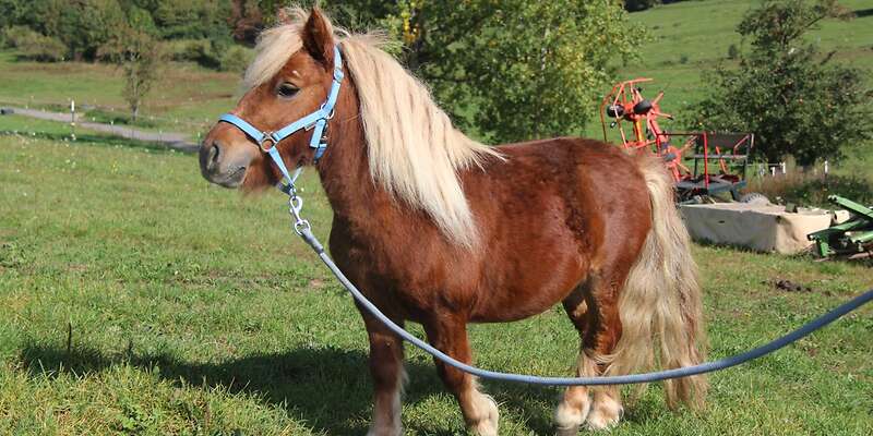 Zum Verkauf steht unser Ponyhengst Donut vom Mühlenkamp. Er wurde am 07.05.2020 geboren und misst 90cm Stockmaß. Mit seiner schönen Fuchsfarbe und der hellen Mähne zieht er alle Blicke auf sich. Zudem hat er einen ruhigen Charakter, den er besonders im Umgang mit Menschen zeigt und sich geduldig striegeln und kuscheln lässt. Donut ist an andere Ponys gewöhnt und findet sich in der Herde gut zurecht, auch den E-Zaun kennt er. Aktuell steht er auf dem Hof Elmenthal.