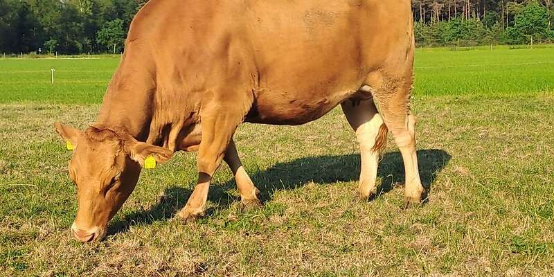 Neben den beiden Rasse-Hauptblöcken Fleckvieh und Doppelnutzung Rotbunt haben wir auch einzelne Vertreterinnen weiterer Rassen in unserer Herde.