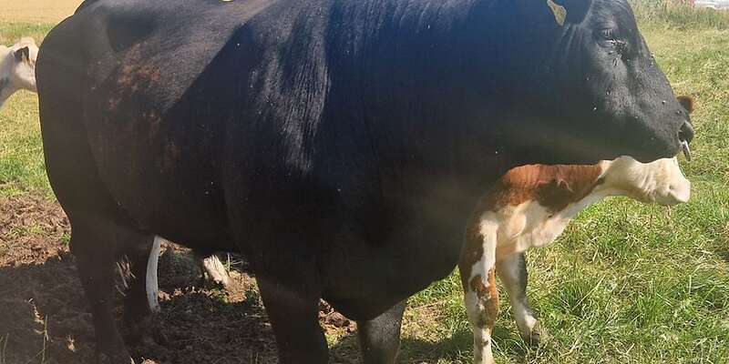 Er ist sehr brav , Menschenbezogen und macht schöne Kälber die er liebevoll behandelt .