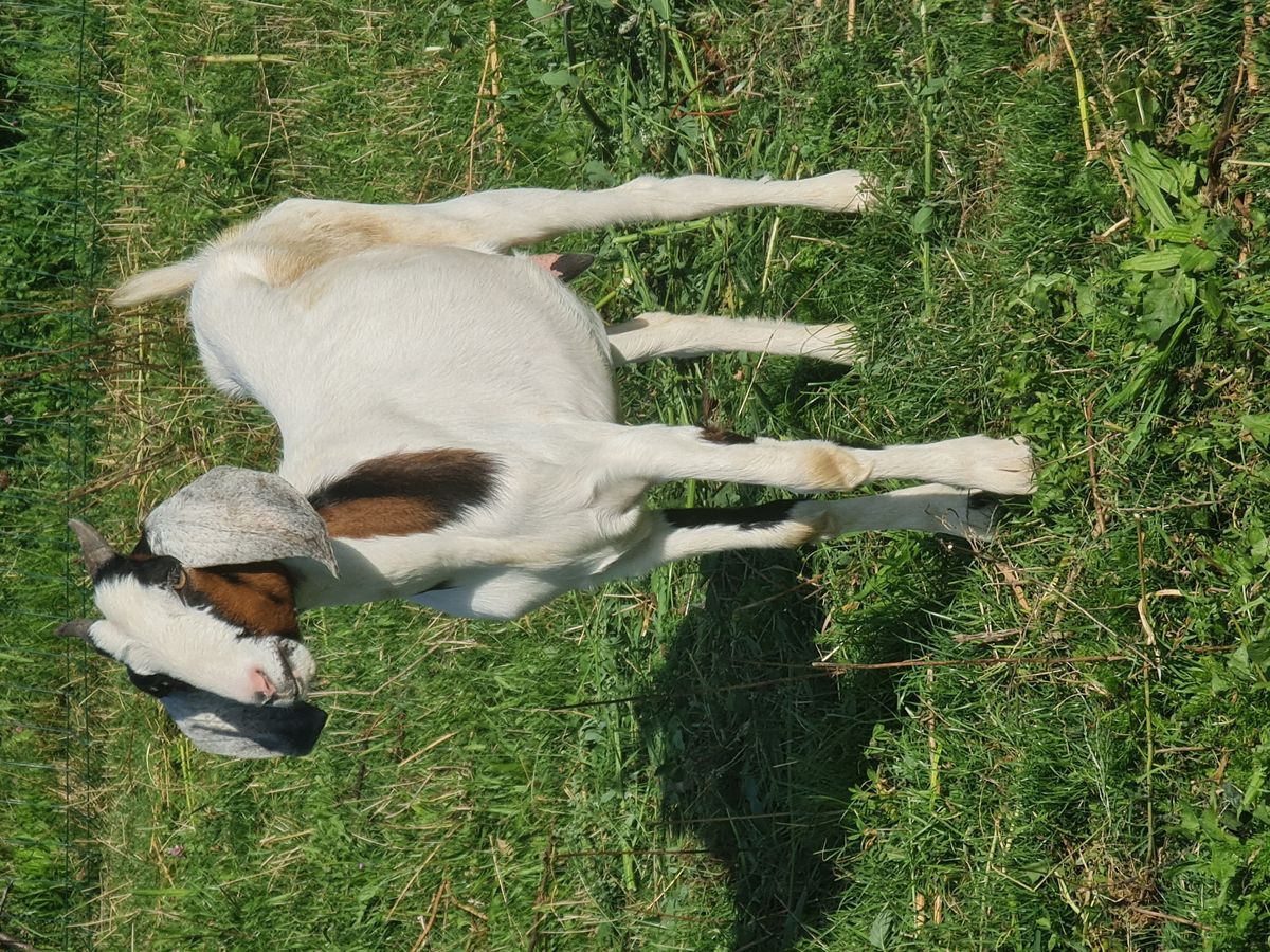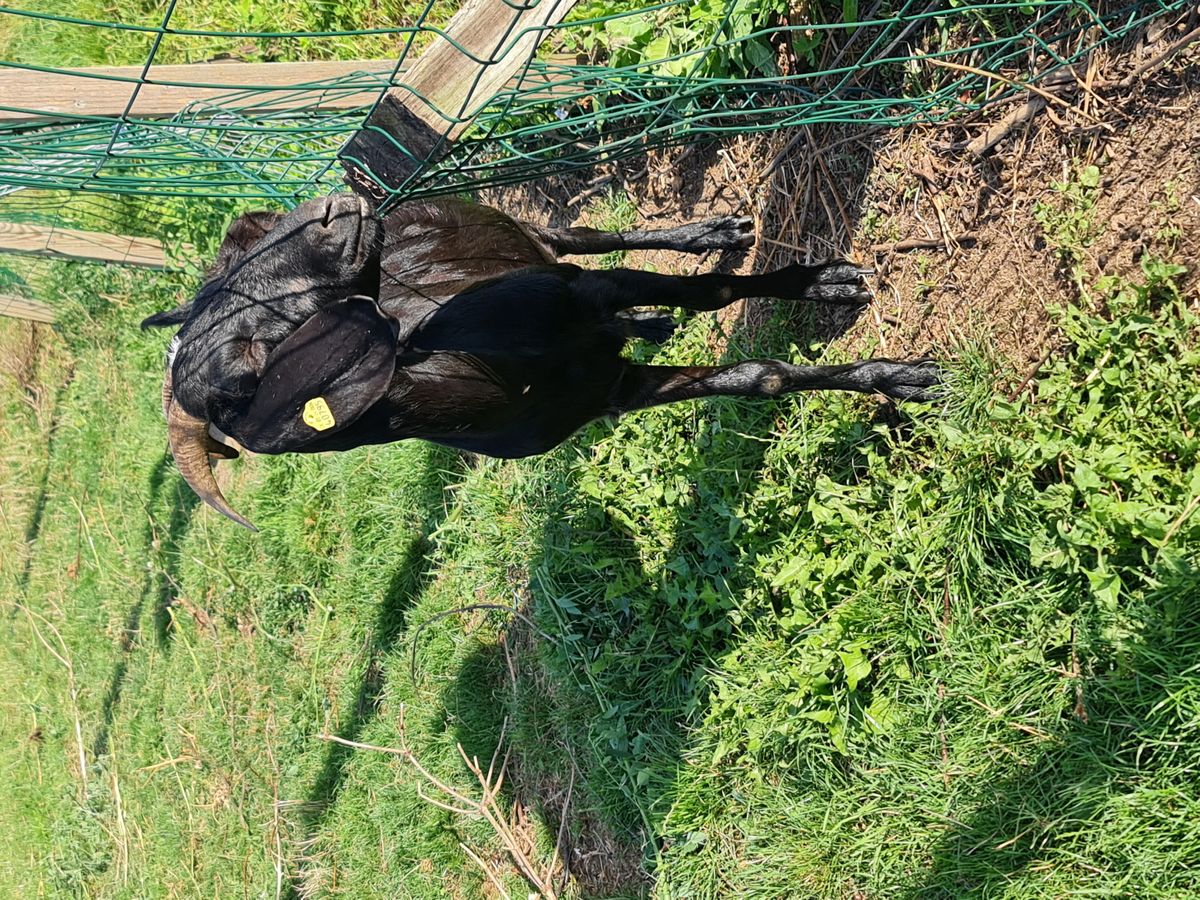 Verkaufe einen Ziegenbock(1 1/2 Jahre), drei Ziegen (4 1/2 und 1 1/2 Jahre alt, Muttertiere, gut zu melken) uns zwei Lämmer ( Böckchen und Zicklein).
