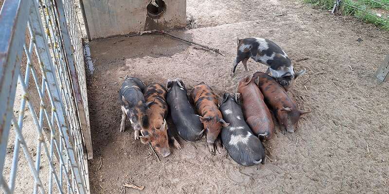 Wir verkaufen Berkshire/Duroc Ferkel aus Offenstallhaltung, die Ferkel sind an einen Elektrozaun gewöhnt.