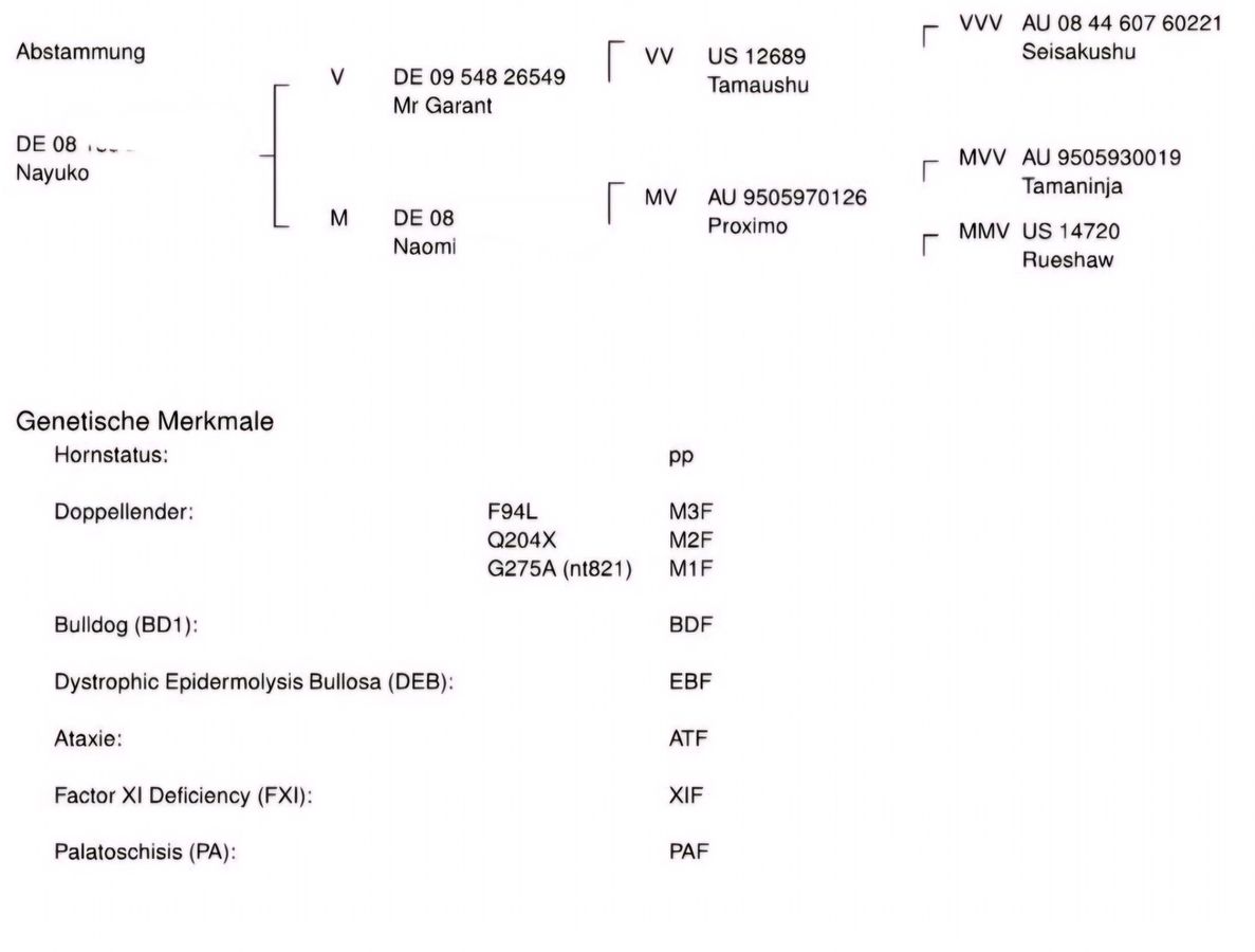 Papiere: Herdenbuch A-fähig, Tierzuchtbescheinigung liegt vor