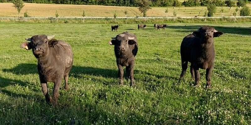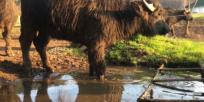 Die Jungtiere zwischen 1 und 3 Jahren, davon 4 weibliche und 2 männliche (kastrierte) Büffel stehen zum Verkauf. Die Tiere sind gesund und frei von Viren, sie sind ganzjährig draussen (Offenstallhaltung).
