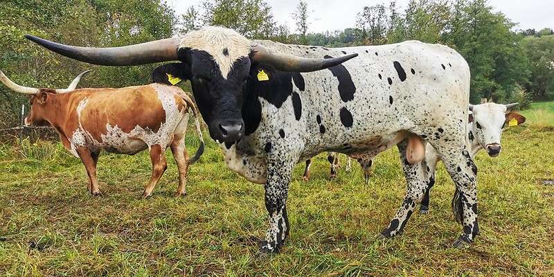 „Frontman“ ist ein Sohn von Spokesman, ein schwarz/weisser Top Vererber aus den USA mit sehr schönem Fellmuster. Seine Mutter ist Horizon Storm Annabell, Tochter von Hojer Horizon, den ersten Texas Longhorn Stier in Europa (der wiederum zurück geht auf den bekannten Stier Overhead) . Er passt perfekt zu unserem Zuchtverständnis. Er steht zum Verkauf, weil wir aus Platzgründen einen unserer Stiere abgeben müssen!