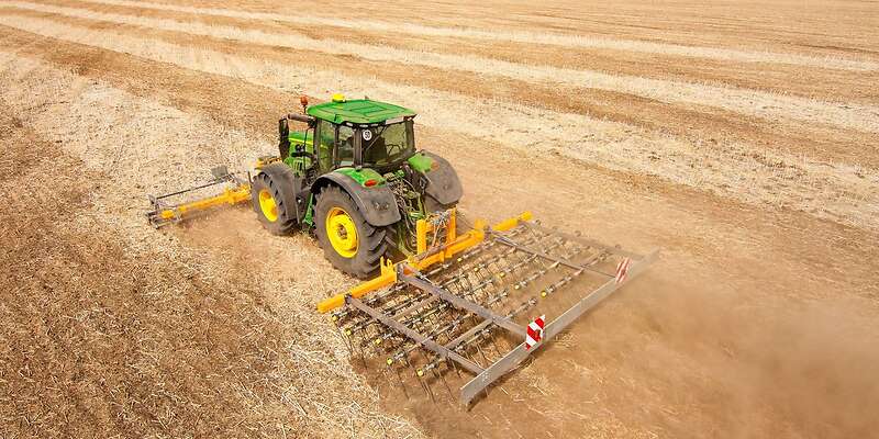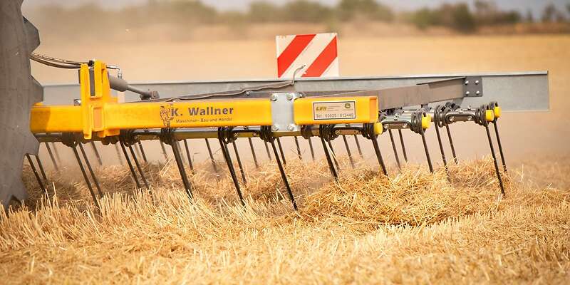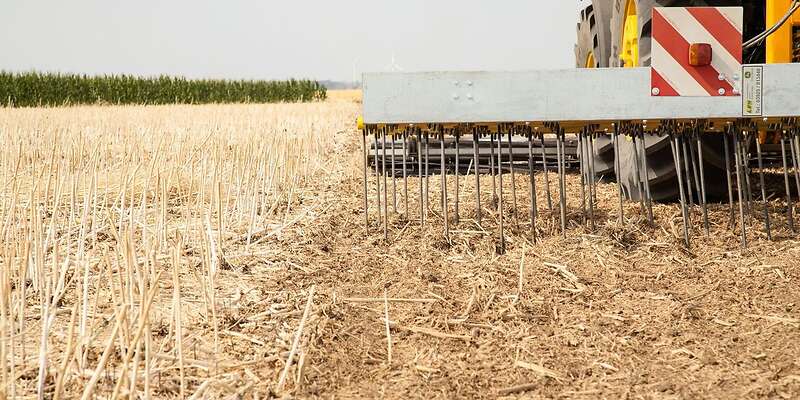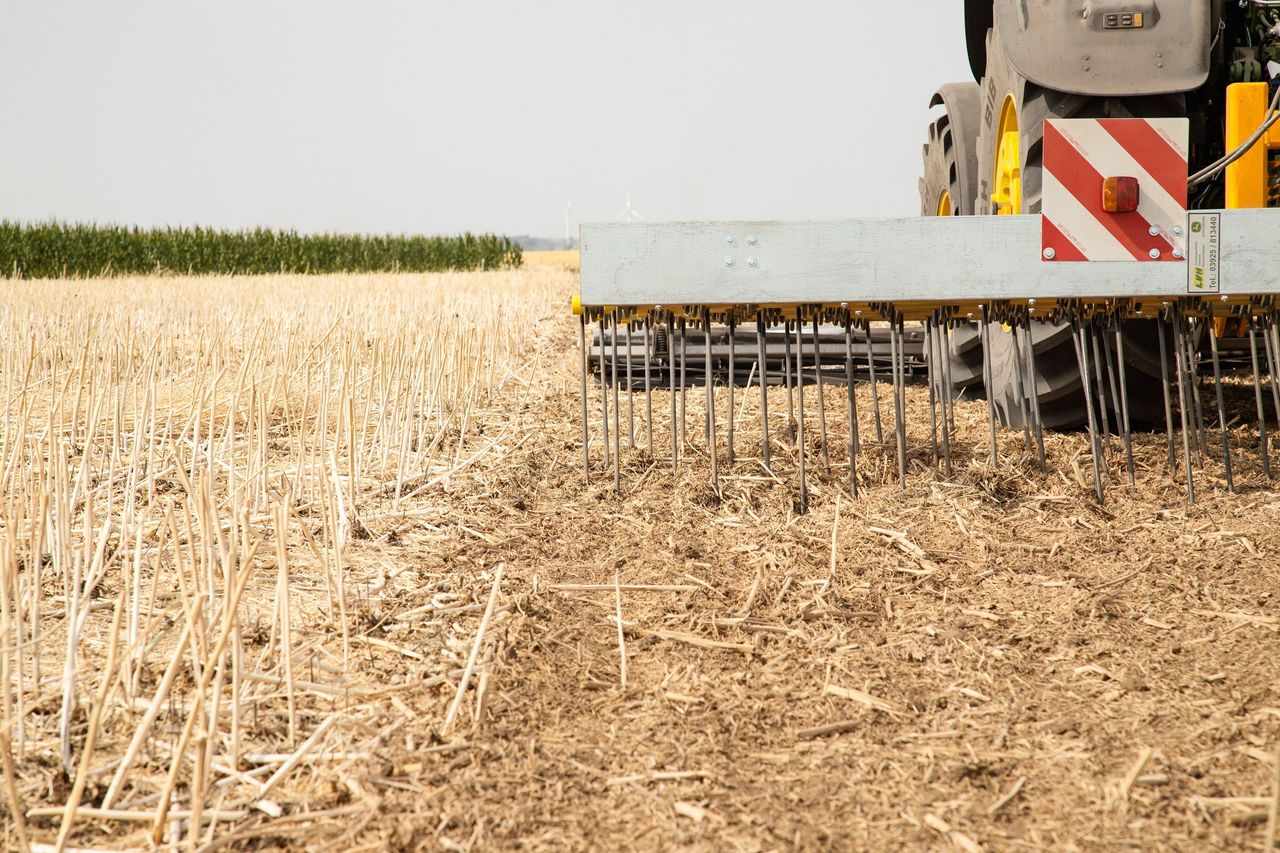 Kein (Leicht-) Grubber oder Scheibenegge schafft eine bessere Strohverteilung, da diese Werkzeuge eher stechend 3 - 6 cm in den Boden hineinarbeiten.