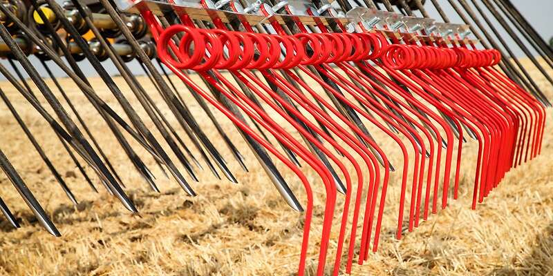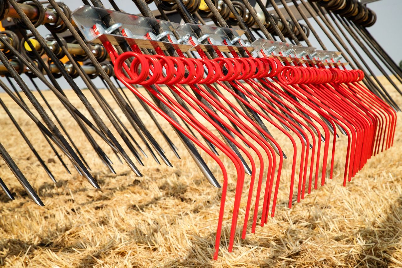 Zusatzoption "Harrow Carrier" , feine Hackstriegel als Aufsatz auf Striegelzinken - variabel an Zinken von agressiv bis schleppend einstellbar.