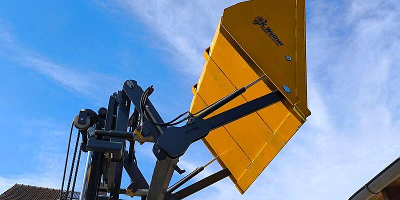 Bei einem Standarthubmast von 3,3m ist mit der Hochkippschaufel eine Überladehöhe von 4,20m möglich!