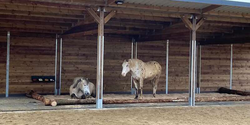 überdachte Fütterungsbereiche für Pferde