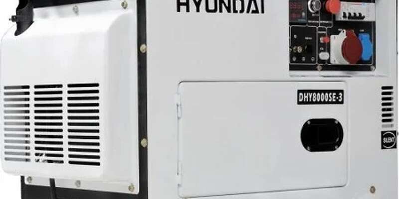 Schallgedämpfter Hyundai-Dieselgenerator – Full Power dreiphasig 5,5 kW = einphasig 5,5 kW (Nennleistung) – Lichtmaschine mit 100 % Kupferwicklung – AVR – elektrischer Start – Digitalanzeige – 12-PS-Motor – 456 cm³ – optionales automatisches ATS-Startsystem.