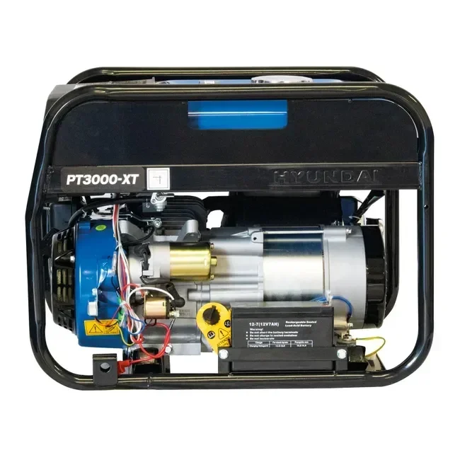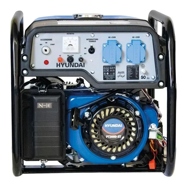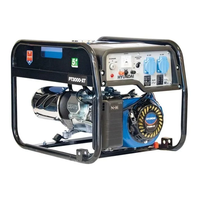 Der Hyundai PT3000-XT ist ein zuverlässiger Benzingenerator mit Hand- und Elektrostart, der die Arbeit erleichtert und besonders für unerfahrene Benutzer wichtig ist. Das Kraftwerk ist mit einem professionellen 4-Takt-Benzinmotor mit Luftkühlung ausgestattet, der eine Leistung von bis zu 3 kW erzeugt. Mit diesem Generator können Sie verschiedene Arten von Elektrowerkzeugen (Säge, Rasenmäher) betreiben und empfindliche Elektronik, einschließlich Gaskessel, Video- und Kameraausrüstung, an das Kraftwerk anschließen. Für eine längere Betriebszeit ohne Nachtanken beträgt das Tankvolumen 15 Liter. Das Bedienfeld befindet sich kompakt an einer Seite des Generators und informiert den Bediener umgehend über den Arbeitsfortschritt. Es verfügt über zwei Wechselstromsteckdosen, eine Gleichstrom-Niederspannungssteckdose, einen Not-Aus-Schalter, einen Betriebsstundenzähler und ein Voltmeter. Der Hyundai PT3000-XT verfügt über einen stabilen Rahmen aus hochfestem Stahl, der das Gerät vor Fremdkörpern und Stürzen schützt. Der breite Standfuß ermöglicht es Ihnen, die Modifikation auch auf unebenen Flächen stabil zu platzieren.