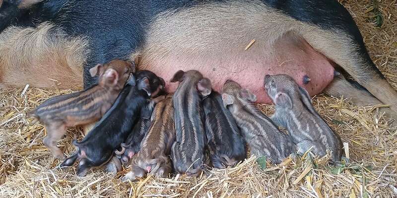Die Ferkel stammen von gesunden Wollschweinsauen aus artgerechter Freilandhaltung.