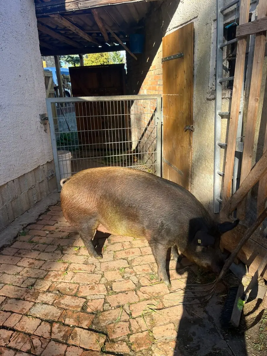 Verkaufe 2 Schlachteschweine der Rasse Iberisches die 2 sind jetz ein bißchen über 1 Jahr. wurden ausschließlich bis jetz nur mit Grünen gefüttert ( Luzerne, Gras, Mais) sie können auch einzeln abgeben werden der Preis ist pro Kilogramm und werden vor Ort verwogen.