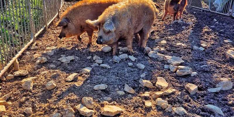 Verkaufe Wollschweine aus Außenhaltung. Die Tiere können sich frei bewegen haben genügend Platz und suhlen sich sehr gerne. Für die Nacht und die kältere Jahreszeit steht Ihnen ein isolierter Stall zur Verfügung der mit Stroh eingestreut ist.