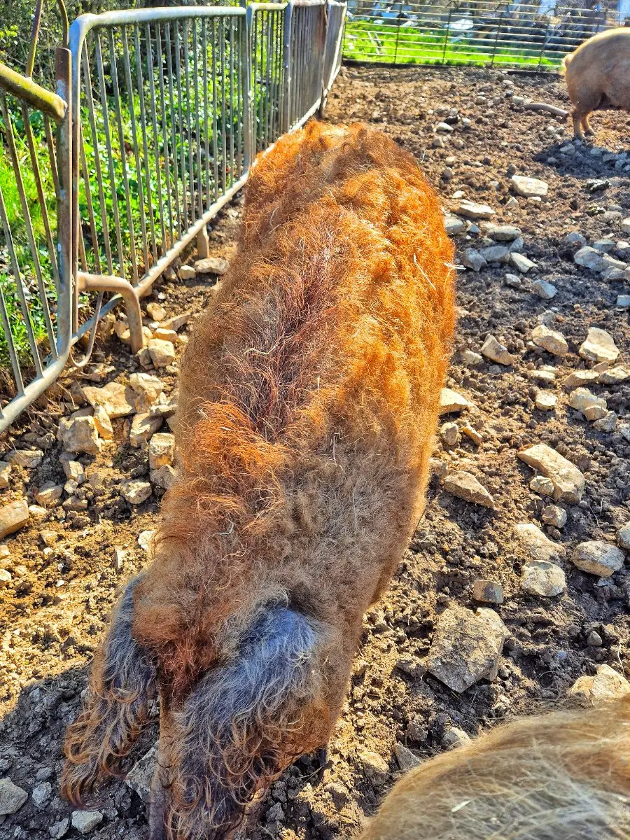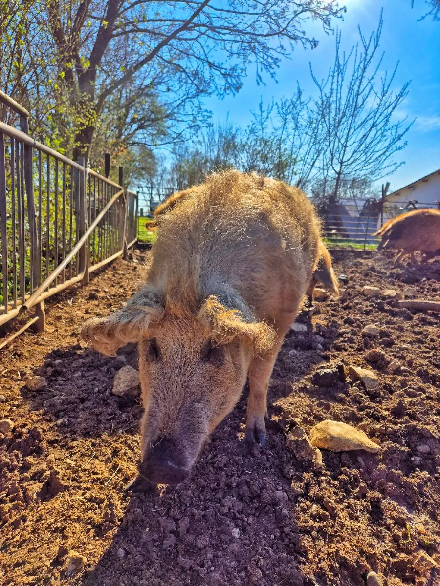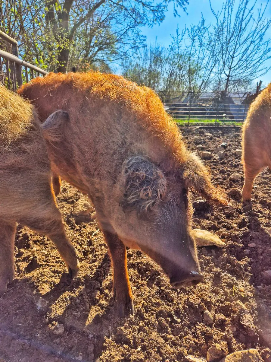 Das Fleisch der Wollschweine ist kräftig und aromatisch vom Geschmack. sehr zart und saftig und hat einen hohen Anteil an intramuskulärem Fett.