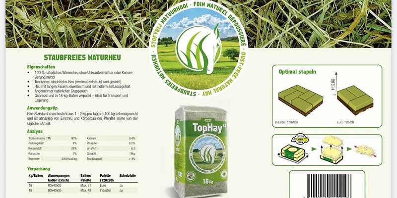 Verkauft werden 18 Packungen hochwertiges Heu der Marke TopHay von Jopack.