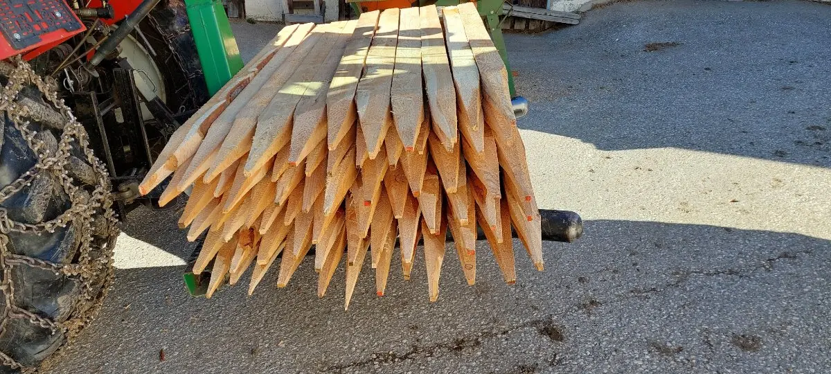 Verkaufe schöne geschnittene(kantige), halbierte, runde oder geviertelte Lärchenstempel, gespitzt und gespranzt, auf Wunsch auch gefast oder gelocht. Länge 1,70 m, 1,80 m. Preis pro Stk. € 6,50,-. Auch größere Menge verfügbar. Raum Lungau, Zustellung möglich.