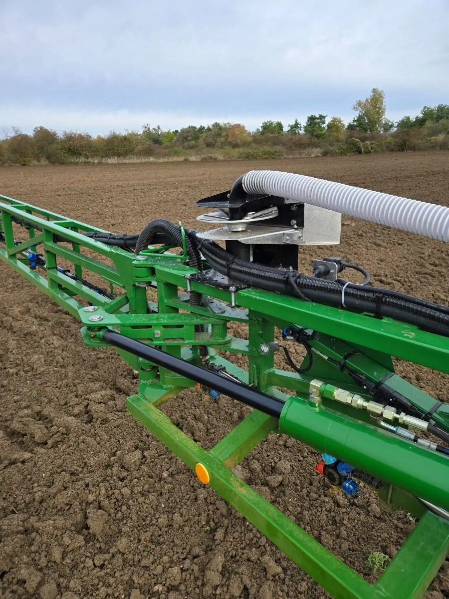 Wird in der Mitte des Sprühgestänges angebracht. Das Gerät wird mit zwei Auslässen mit zwei Schläuchen mit einem Durchmesser von 40 mm und einer Turbine mit Elektromotor in der Mitte jeder Gestänge-Hälfte geliefert.