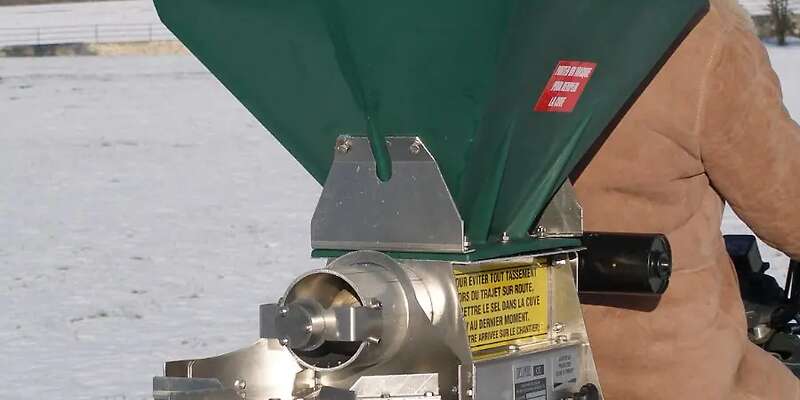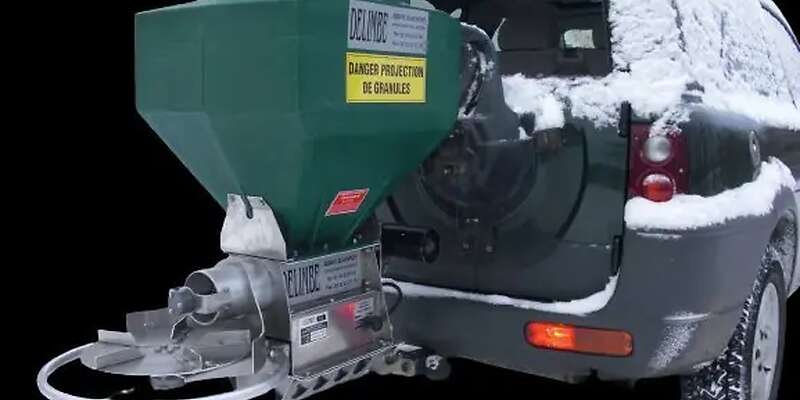 Elektrischer Streuer zum Schneeräumen auf Straßen, Salzauswurf.